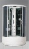 modern steam roomSIZE:1100X1100X2150MMMaterial:ABS&TemperedGlass& AluminumFrame MainComponents: 1 handle shower2 top shower3 foot massage device4 sharp massage5 radio6 fan7 top light8 star back ground lamp9 free handle telephone10 commodity shelf11 towel bar12 mirror13 handle14 shampoo Option: Steam Thermostaticmixer